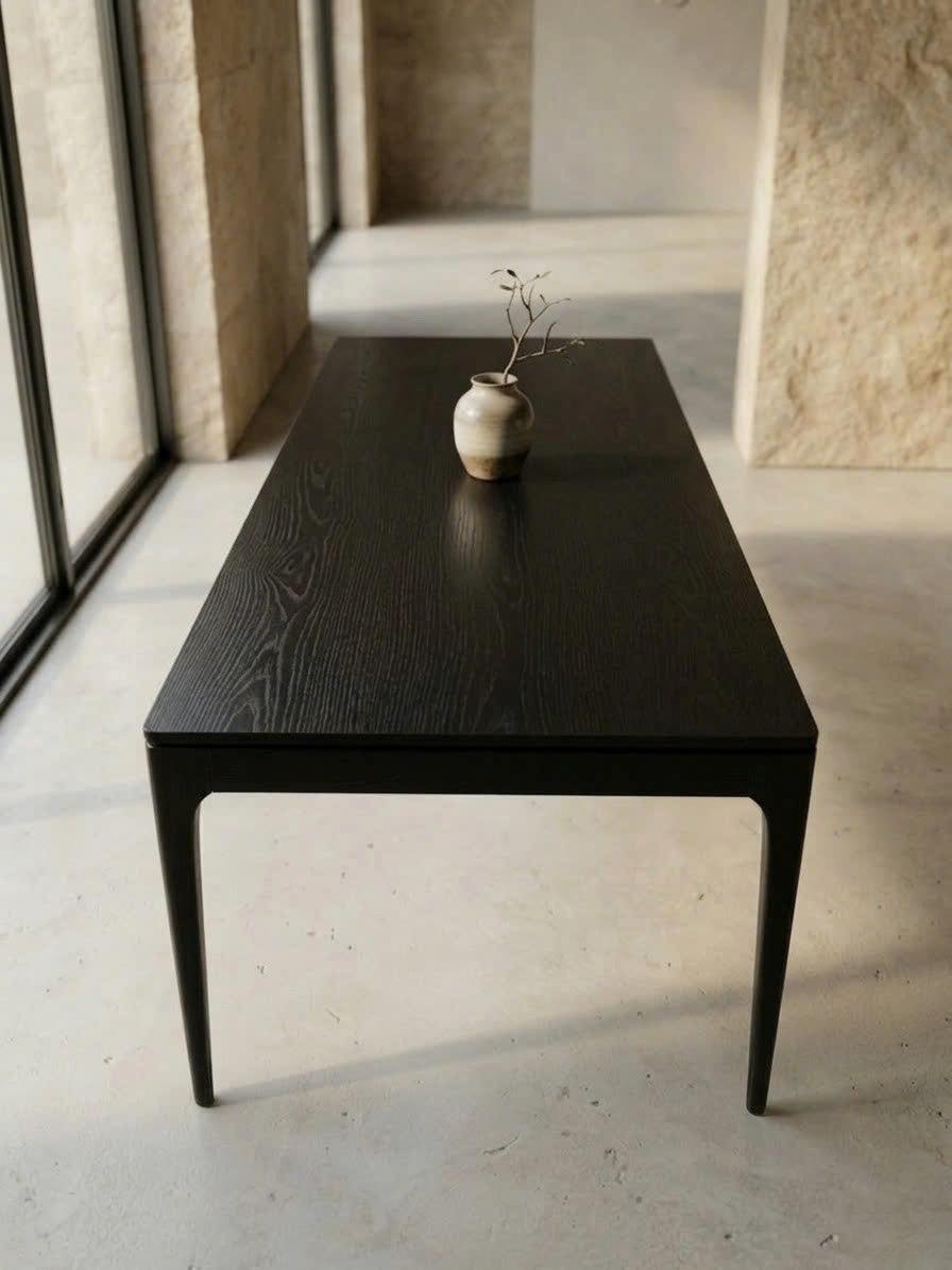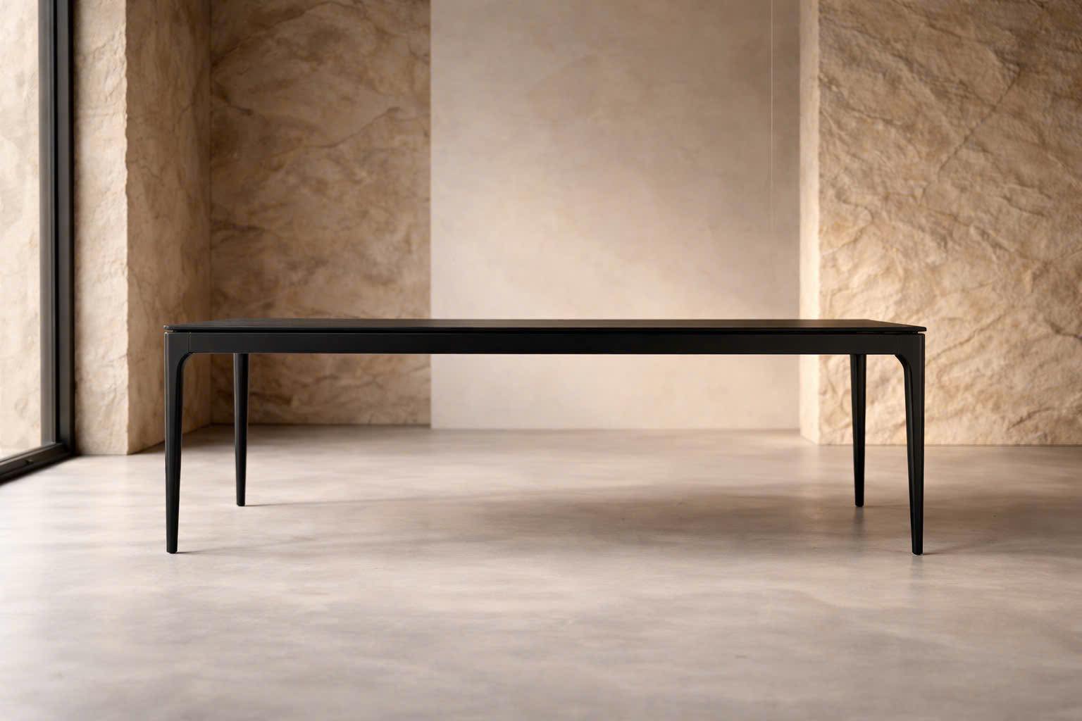 A 220 cm long table that retains a sense of lightness, slenderness, and sophistication, perfect for high-end interiors that value minimalism and elegance.