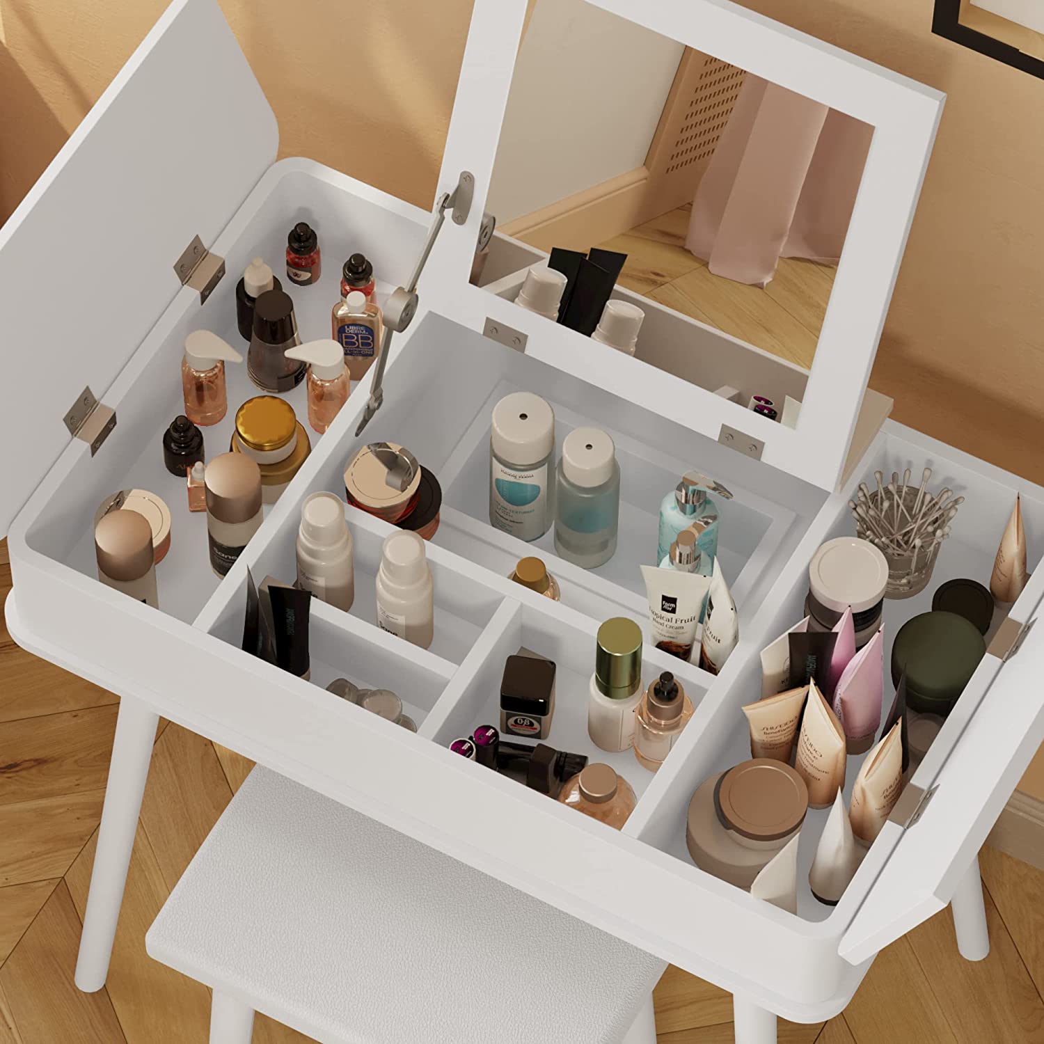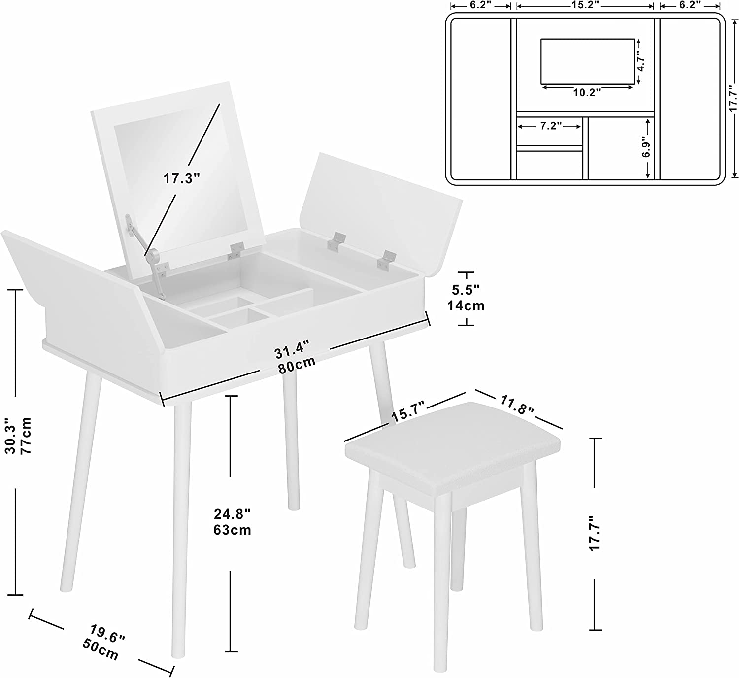 Set bàn trang điểm trắng 0016 – White Vanity Set 0016 (2 pieces)
